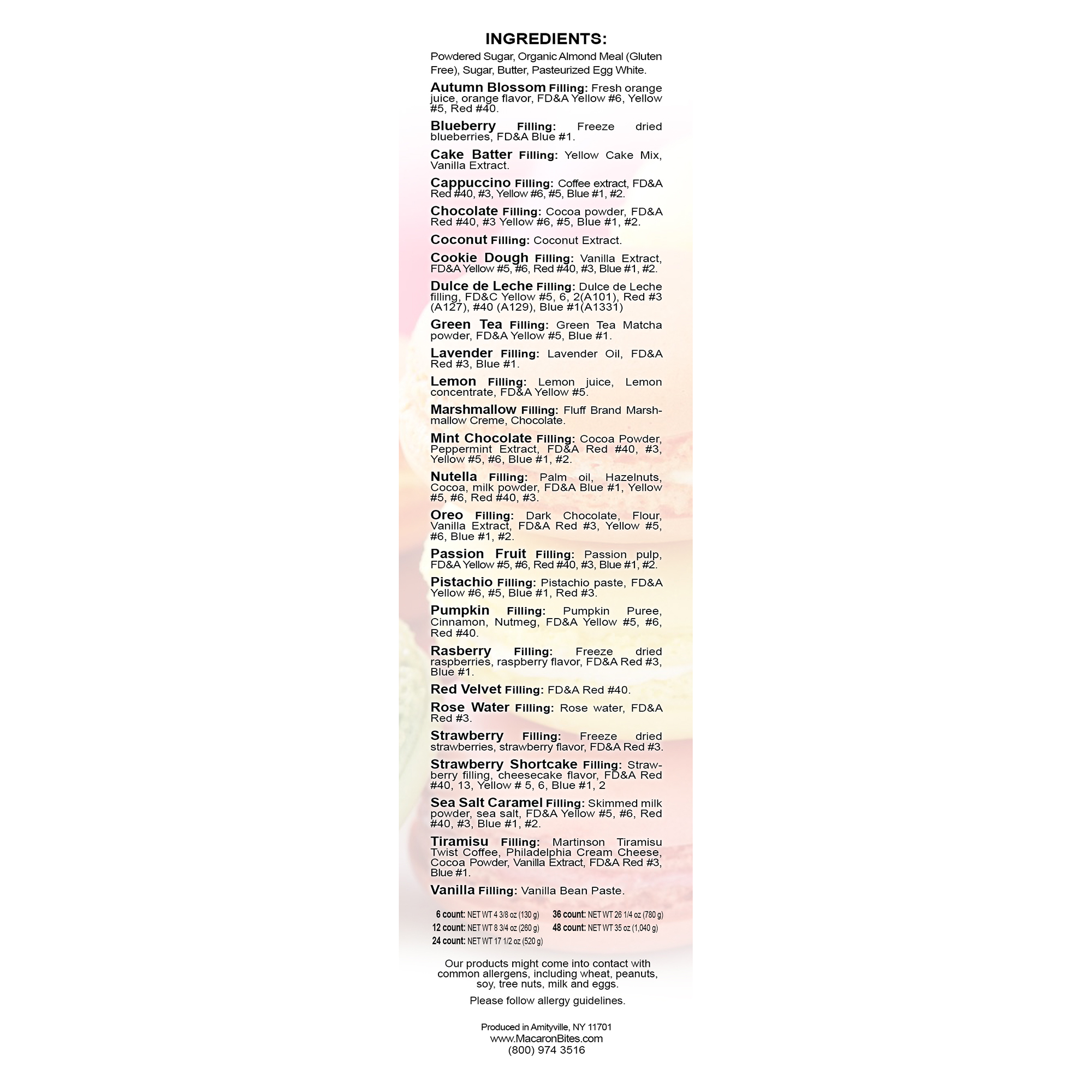 FRESH DELIVERY GUARANTEED / ALWAYS FRESH ▶ Your macarons are carefully packed with multiple layers of cushioning to protect them and preserve their flavor during shipping. We use USPS Priority Shipping to deliver our macarons. Package arrives as fresh & authentic as possible within 2-3 business days. Keep refrigerated upon arrival or store in the freezer and take them out 30 minutes at room temperature before serving.